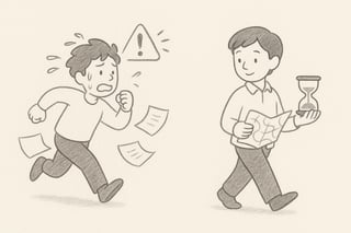 A diferença entre urgência real e stress desnecessário é, muitas vezes, uma questão de tempo — não para agir, mas para pensar.